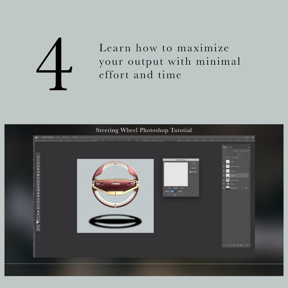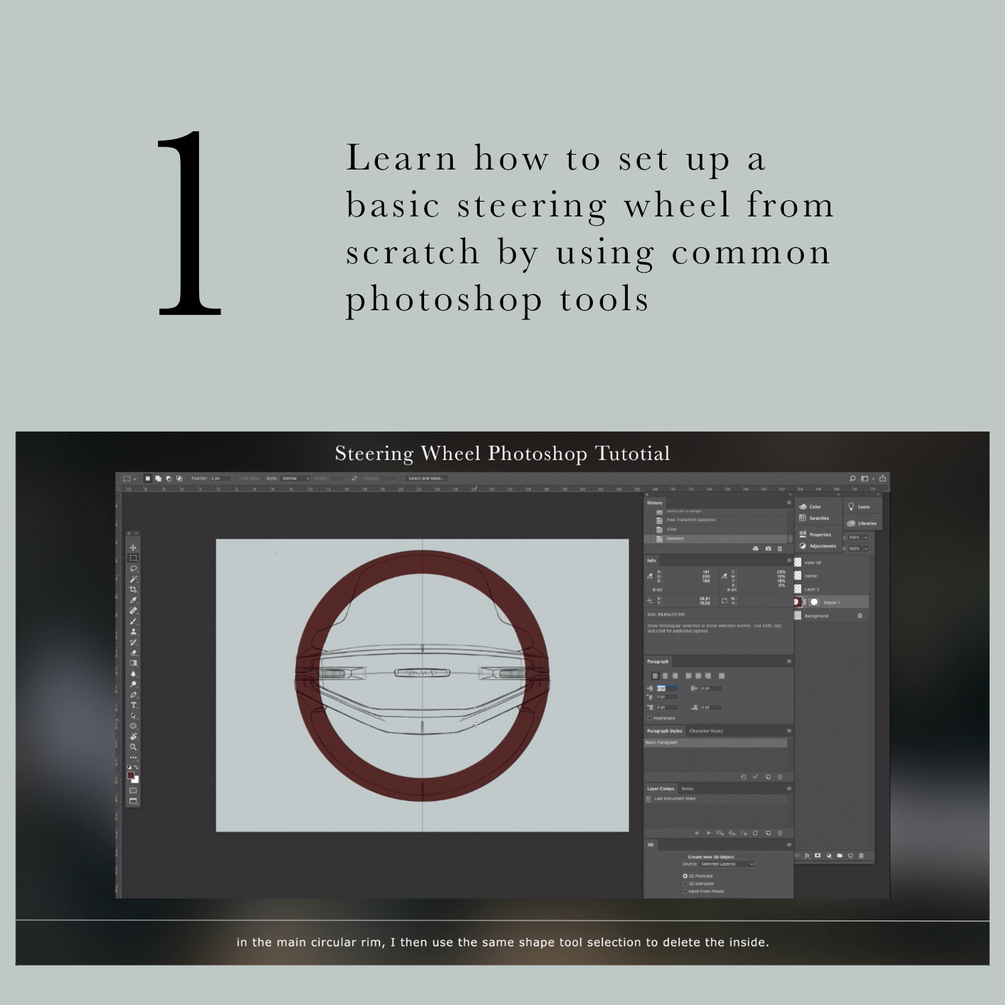 As part of the Interior Design Series, I'm going over how to render a basic steering wheel in photoshop. The steering wheel is a great design object that most students skip over in their interior projects. They mostly focus on the dashboard and even seats before spending time on the steering wheel.